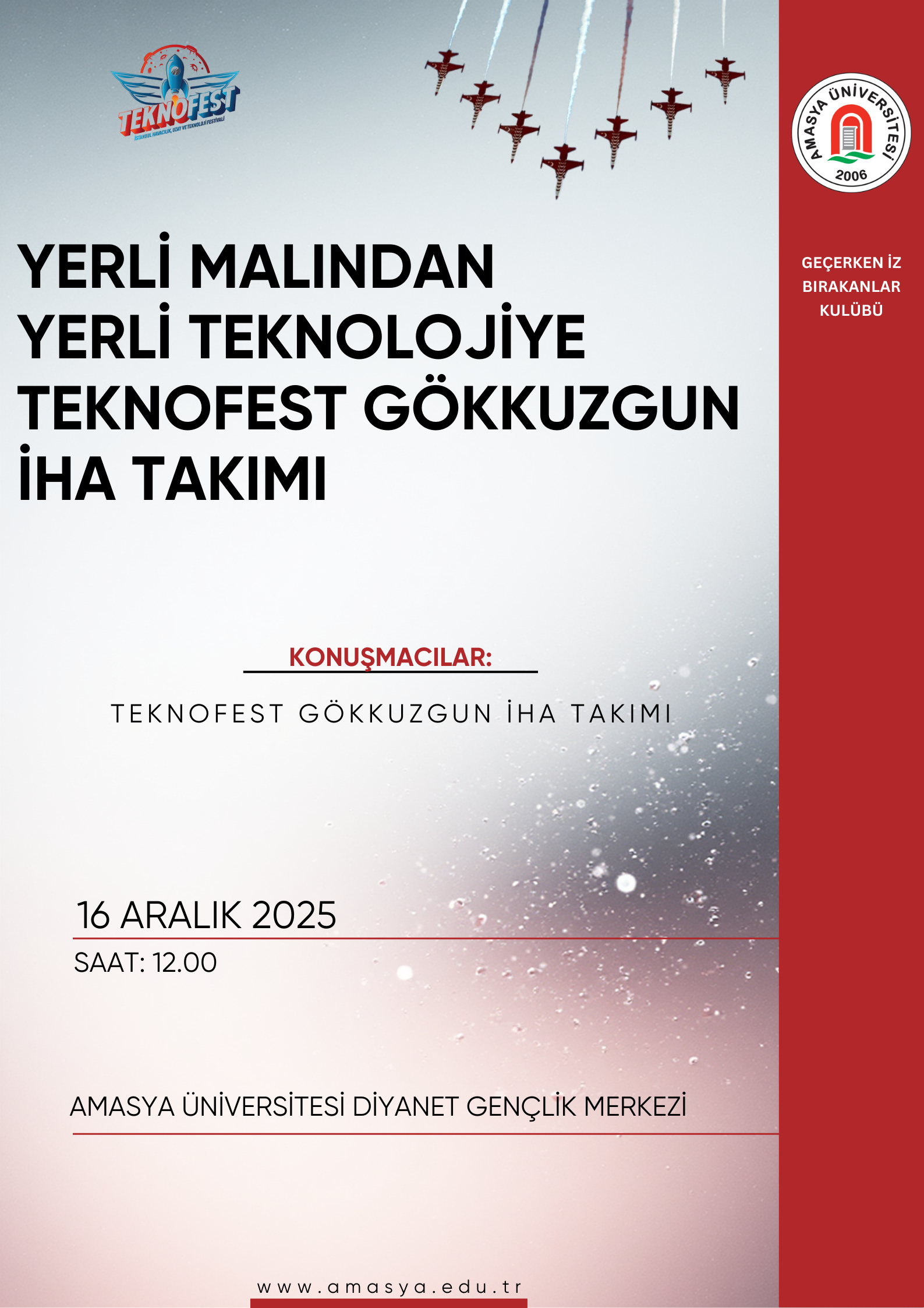 Türk Havacılık ve Uzay Sanayi A.Ş. (TUSAŞ) tarafından yürütülen 2025-2026 LIFT UP Sanayi Odaklı Lisans Bitirme Projeleri Programı kapsamında, “Kokpit İçi Ölçümler için Giyilebilir Esnek Sensörlerin Geliştirilmesi” başlıklı proje desteklenmeye hak kazandı. Amasya Üniversitesi Mühendislik Fakültesi Makine Mühendisliği Bölümü’nden Doç. Dr. Selçuk Sarıkoç ile Elektrik-Elektronik Mühendisliği Bölümü’nden Dr. Öğr. Üyesi İsmail Öztürk ve Kütahya Dumlupınar Üniversitesi’nden Dr. Öğr. Üyesi Onur Koşar danışmanlığında yürütülen AviTech proje ekibinde; Makine Mühendisliği öğrencisi İlayda Karakaya (Takım Lideri), Elektrik-Elektronik Mühendisliği öğrencisi Sultan Kader…