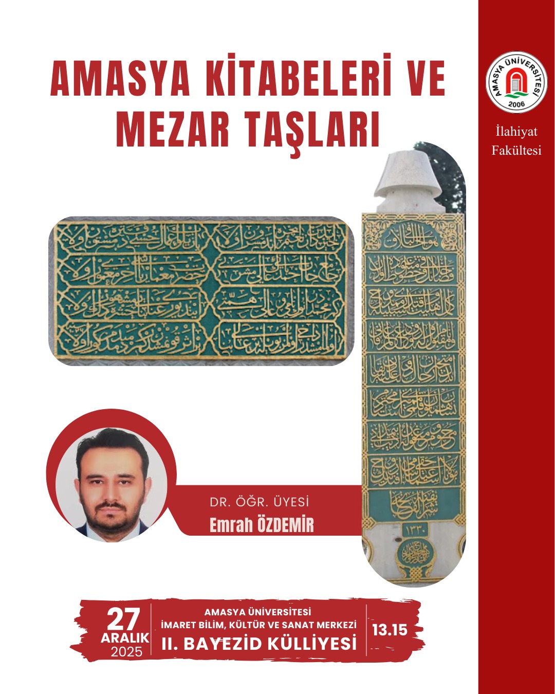 Amasya Üniversitesi İmaret Bilim Kültür ve Sanat Merkezinde çarşamba akşamları düzenli olarak gerçekleştirilen “Dini Musiki İmaret Meşkleri” programı, Hattat Hamdullah Güzel Sanatlar Fakültesi Dekan Yardımcısı Doç. Dr. Tahir Çağman’ın riyasetinde yoğun ilgiyle sürdürülüyor. Son haftalarda gerçekleştirilen İmaret Meşkleri 30, 31 ve 32 programlarında; Beyâti, Karcığar ve Uşşâk makamlarında icra edilen yeni eserler dinleyicilerden büyük beğeni topladı. Enstrüman icracılarının aktif katılımıyla zenginleşen meşk ortamı hem akademisyenlerden hem de şehir halkından geniş bir katılım aldı. Geleneksel dini musikinin yaşatılması ve…