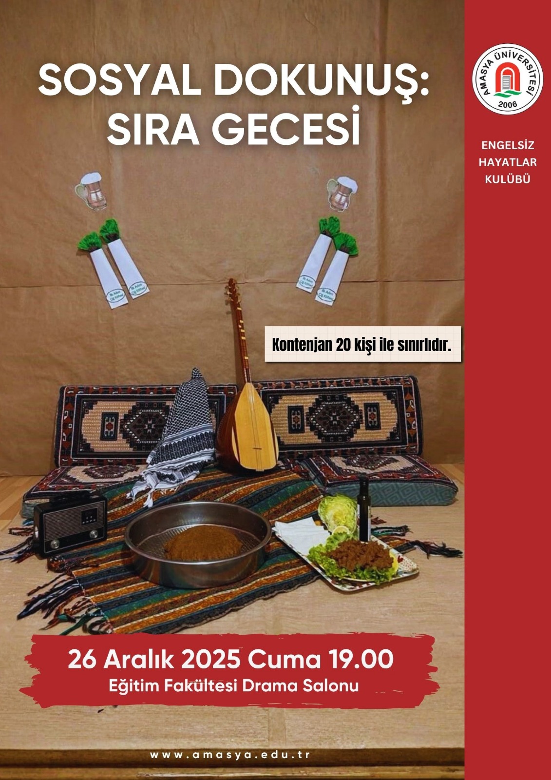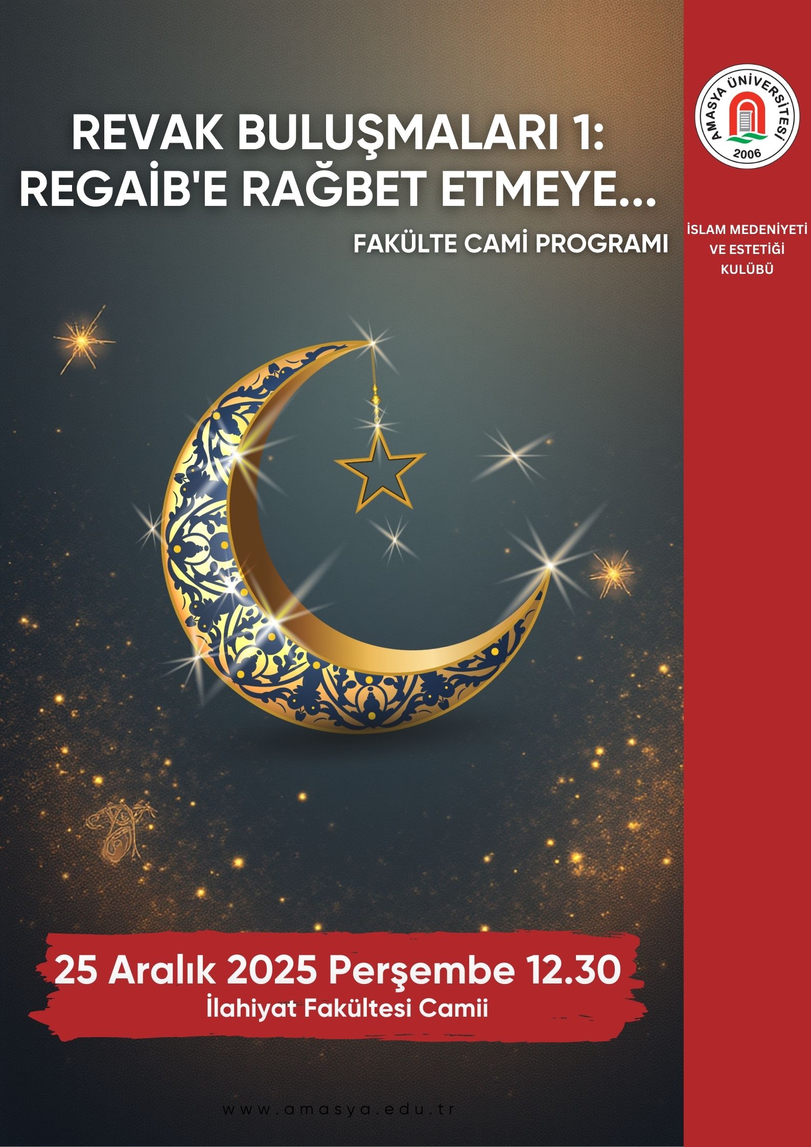 Büyük mutasavvıf ve düşünür Hz. Mevlâna Celaleddin-i Rumi’nin 752. Vuslat Yıl Dönümü dolayısıyla, Amasya Üniversitesi’nin öncülüğünde ve Amasya Valiliği iş birliğiyle bu yıl ikincisi düzenlenen “Şeb-i Arûs: Hz. Mevlâna’nın 752. Vuslat Yıl Dönümü Anısına Acemaşiran Mevlevî Âyini ve Semâ Mukâbelesi” programı, Amasya Spor Salonu’nda gerçekleştirildi. Programa; Amasya Valisi Önder Bakan, Amasya Milletvekili Haluk İpek, Garnizon Komutanı Tuğg. Kemal Çakıroğlu, Amasya Belediye Başkanı Av. Turgay Sevindi, Cumhuriyet Başsavcı Vekili Hamza Furkan Öztürk, Yükseköğretim Kurulu üyeleri Prof. Dr. Arif Bilgin…