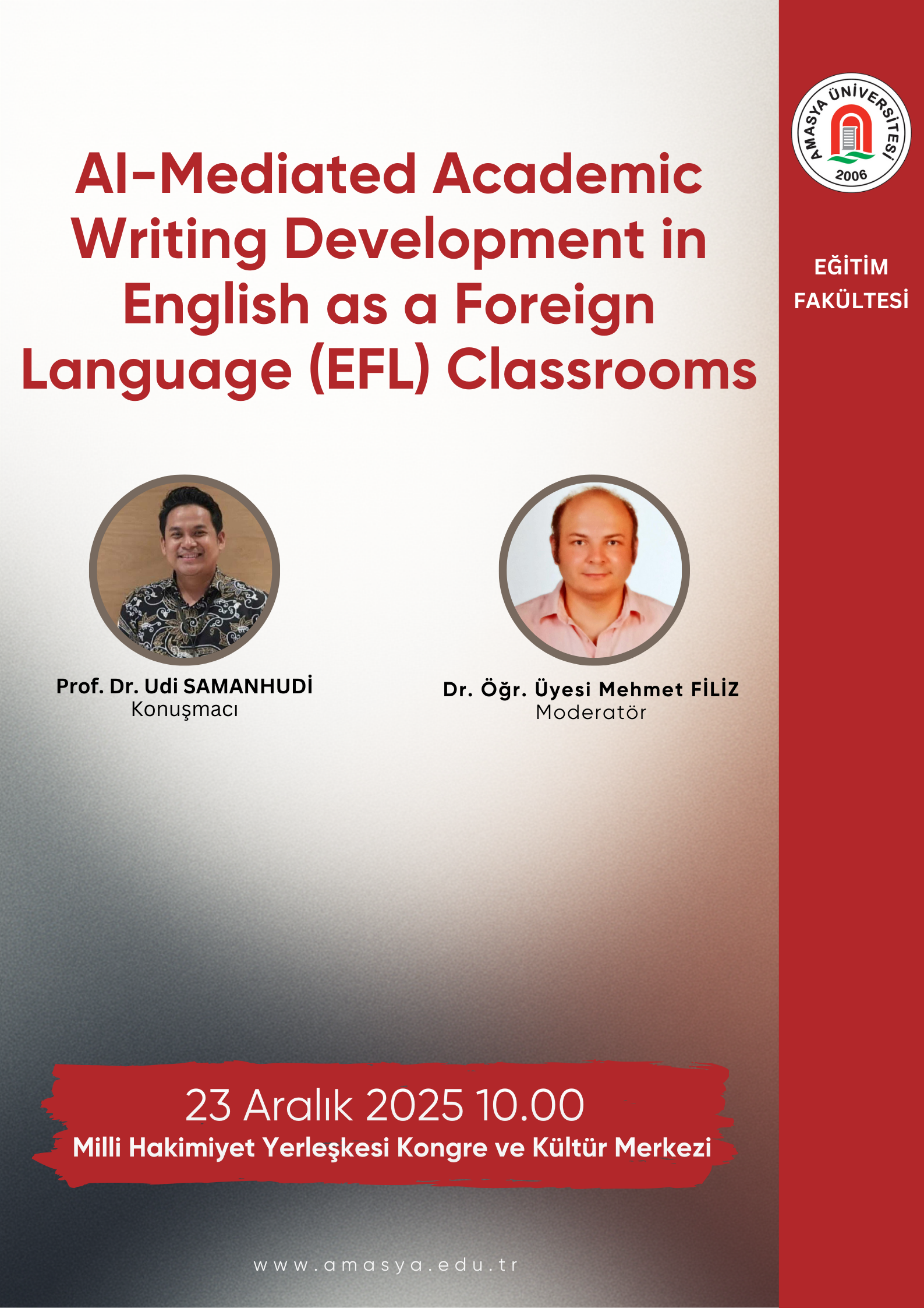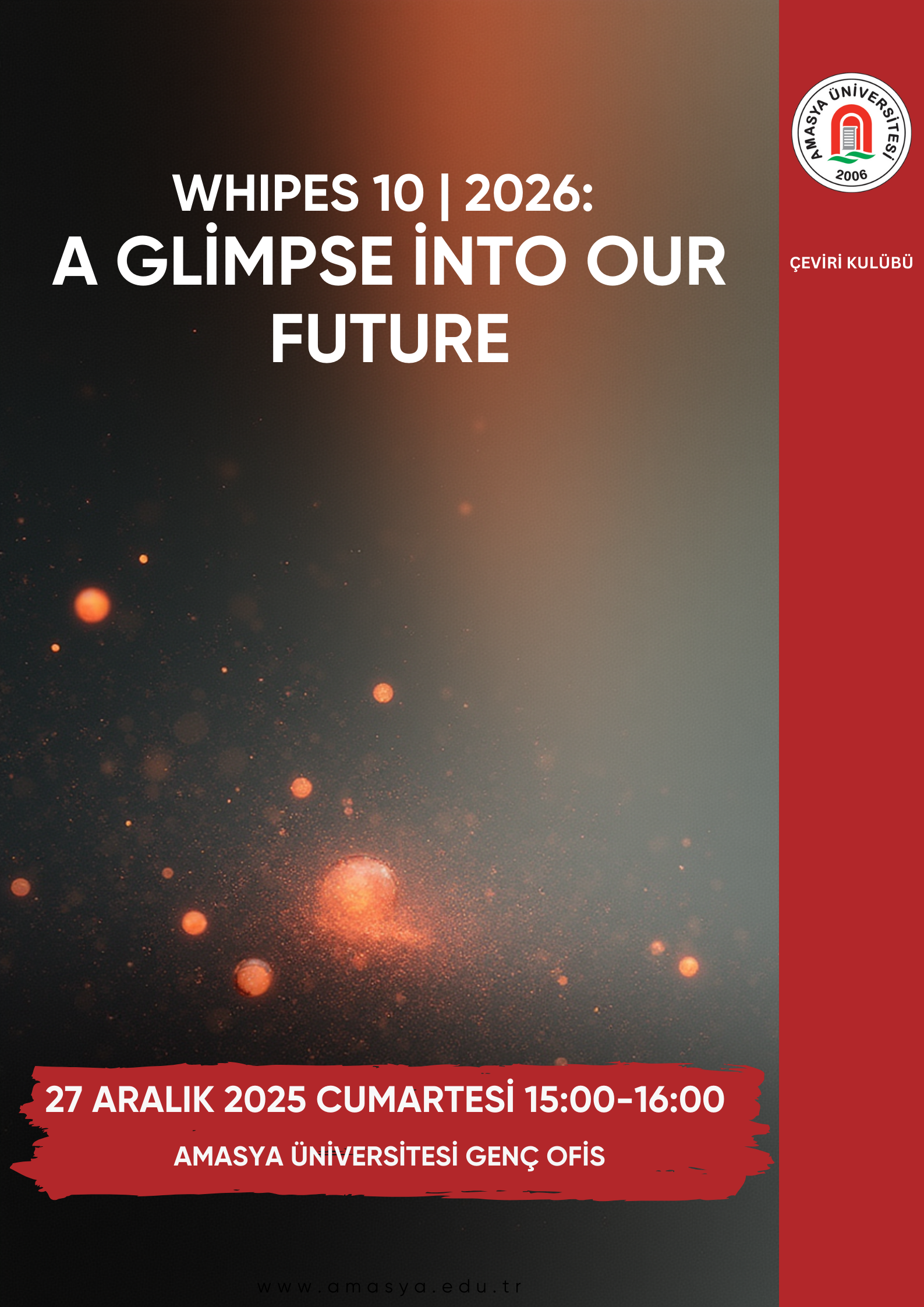 Amasya Üniversitesi Öğrenci Destek Koordinatörlüğü Kariyer Gelişim Merkezi ve Kariyer ve Girişimcilik Kulübü iş birliğinde, Silverline Pazarlama Direktörü Burak Yetgin’in katılımıyla “Değişime İnan, İşini Şansa Bırakma” konulu kariyer konferansı gerçekleştirildi. Milli Hakimiyet Yerleşkesi Kongre ve Kültür Merkezi’nde düzenlenen konferansa; Rektör Yardımcıları Prof. Dr. Murat Kurt ve Prof. Dr. Resul Çekin’in yanı sıra akademik ve idari personel ile çok sayıda öğrenci katıldı. Konferansta konuşan Burak Yetgin, iş dünyasında değişime uyum sağlama, etkili kariyer planlaması ve pazarlama alanındaki mesleki deneyimlerine…