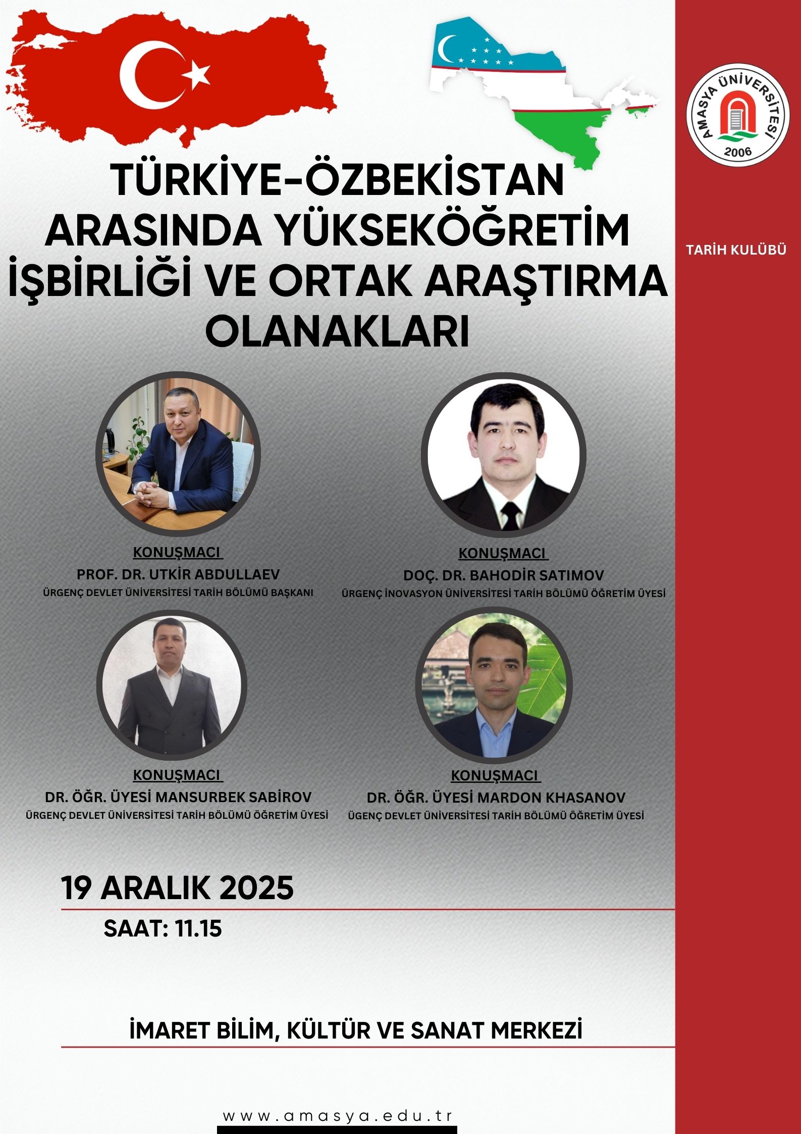 Amasya Üniversitesi Senato Odası’nda, Anadolu Selçuklu Sultanı I. Kılıçarslan komutasındaki Türk-İslam ordusunun 1101 yılında Haçlı ordusuna karşı Amasya’da kazandığı tarihi zaferin izlerini ortaya çıkarmaya yönelik yürütülen bilimsel çalışmalarla ilgili basın toplantısı gerçekleştirildi. Toplantıya, araştırmanın onursal başkanı Amasya Üniversitesi Rektörü Prof. Dr. Ahmet Hakkı Turabi, Dr. Öğr. Üyesi Neslihan Korkmaz, Doç. Dr. Ahmet Yılmaz, Prof. Dr. Berkant Konukoğlu, Necati Otçu ve Enver Erdem Eryılmaz katıldı. Ayrıca Amasya Üniversitesi’nden Rektör Yardımcıları Prof. Dr. Murat Kurt ve Prof. Dr. Resul Çekin…